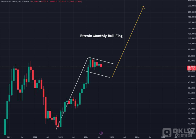 另一位分析師埃爾賈也指出,Bitcoin似乎在月度圖表上形成了牛市旗幟。他在8月4日的發(fā)文中寫道:“BTC 巨大的牛市旗幟。Bitcoin的暴漲將成為傳奇。”