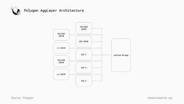 此外,實現終極鏈上用戶體驗的另一個關鍵要素是跨不同Blockchain環境進行通信和交互的能力。一直以來,用戶依賴跨鏈橋來滿足這一需求,但隨著時間的推移,事實證明,跨鏈橋有著很大的風險,安全性不高。鏈抽象促進了圍繞賬戶和執行抽象的開發,同時在網絡層引入了新的基礎設施,從而消除了在不同Blockchain環境中進行通信和交互的復雜性。有關該概念的基本原理和更廣泛的鏈抽象生態的全面概述,可參閱Shoal的鏈抽象深度剖析。