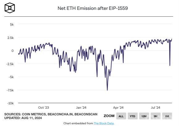 據The Block的統計,盡管有210個ETH被銷毀,但凈發行量卻超過了2,000個ETH。這一現象引發了對Ethereum網絡健康狀況的廣泛關注。