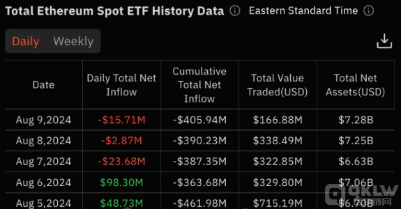 自7月23日推出以來,美國的現貨EthereumETF在首周內表現出色,首次實現凈流入。根據ETF追蹤機構SoSoValue的數據,截至8月9日,9只新推出的EthereumETF在8月5日開始的一周內,凈流入總額達到了1.048億美元,交易資金流入總額更是達到了19億美元,使得總資產規模提升至73億美元。