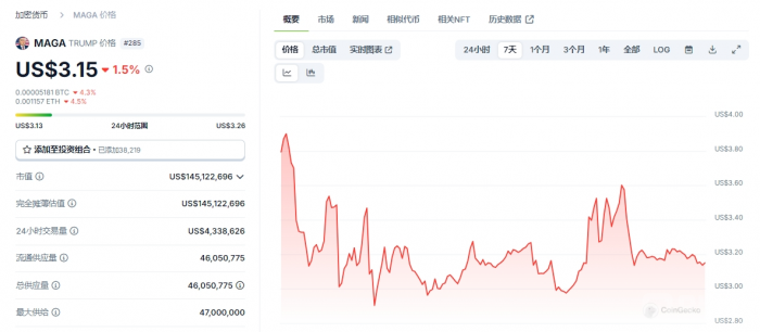 政治局勢(shì)的變化也影響了與特朗普相關(guān)概念meme Tokens的表現(xiàn)。截至 8 月 14 日下午 3:30,MAGA(TRUMP)Tokens在 24 小時(shí)內(nèi)下跌了 1.5%,MAGA(MAGA) Tokens跌幅為 2.5%。