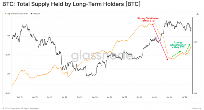 根據最新的Glassnode報告,長期持有者(LTH)正在逐步增加對Bitcoin(BTC)的投資。