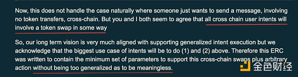 在ERC-7683的論壇頁面中,面對覺得跨鏈資產(chǎn)轉(zhuǎn)移功能太微小、不夠通用、支持生態(tài)不夠多的質(zhì)疑,開發(fā)者們對ERC標準本身的職責展開了討論。極簡ERC的支持者們認為工具級別的標準已經(jīng)足夠解決目前存在的問題,可以與現(xiàn)有的標準結(jié)合,采用阻力也會相對較小。