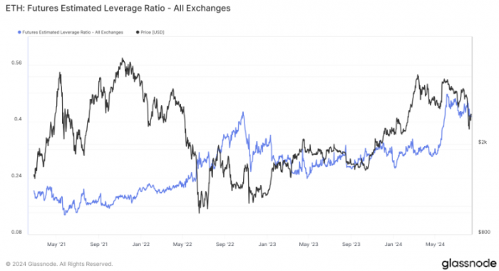 Ethereum期貨的預估杠桿率在2024年也出現了顯著波動,這反映出市場情緒和風險偏好的變化。