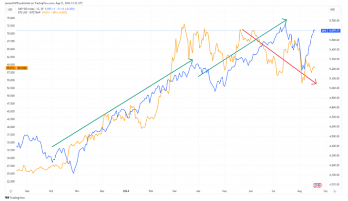Bitcoin與標普500指數背離現象重現 市場動向引發熱議