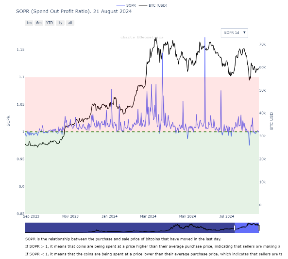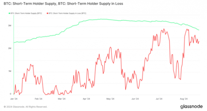 盡管數據顯示,80%的短期持有者(STH)面臨虧損,實際損失卻相對較小。這表明Bitcoin持有者的信心仍在。通過對短期持有者供應和支出產出利潤率(SOPR)的分析,能更好地理解Bitcoin的市場情緒。數據顯示,7月28日至8月20日期間,短期持有者虧損比例從21.74%飆升至94.21%,隨后略有回落。