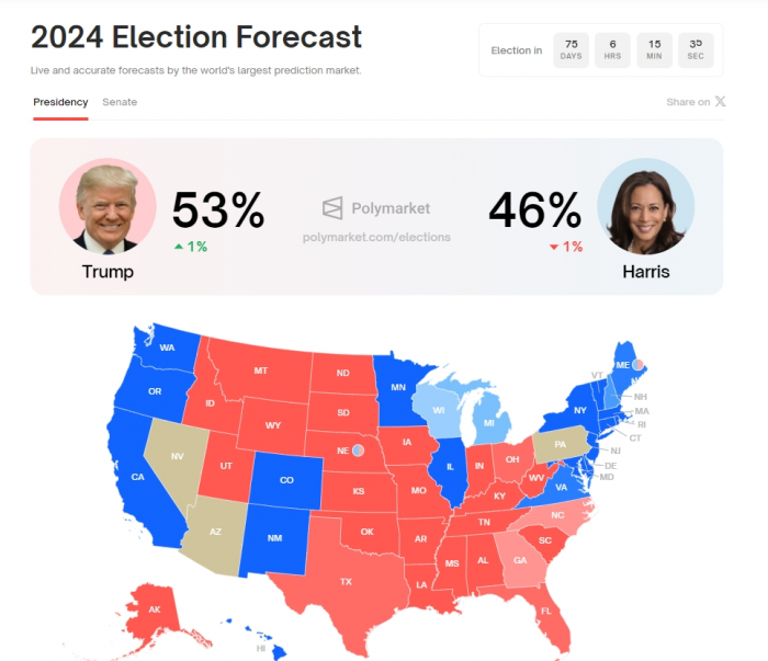 當前美國的政治局勢高度極化,以特朗普和卡瑪拉·哈里斯為代表的兩黨對立使得選情變得難以預測。尤其是在民主黨重新崛起的背景下,選民幾乎按照黨派界限分成兩半。對于crypto行業(yè)來說,無論哪個黨派最終勝出,都將對其未來產(chǎn)生深遠影響。