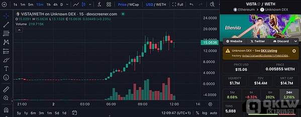 Ethervista的TokensVISTA在發(fā)行時采取了100%分配給流動性提供者的策略,并鎖定5天,這一做法旨在防止在發(fā)行初期出現(xiàn)跑路現(xiàn)象。根據(jù)分析,大多數(shù)跑路事件發(fā)生在2至4天內(nèi)。Ethervista的VISTATokens市值已突破1500萬美元。