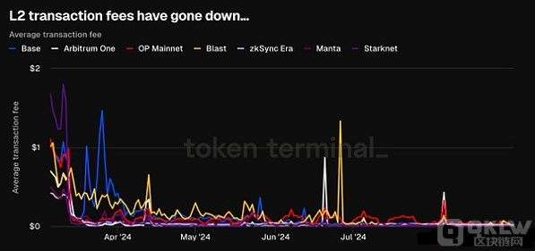 高度競爭的環(huán)境促使各個Layer 2解決方案提供最低交易費(fèi)用。為了吸引更多用戶,這些解決方案不斷削減費(fèi)用,從而形成了一個自我強(qiáng)化的機(jī)制。這種競爭使得用戶不再直接在Ethereum基礎(chǔ)層上結(jié)算,進(jìn)一步加劇了Layer 1網(wǎng)絡(luò)費(fèi)用的下降。