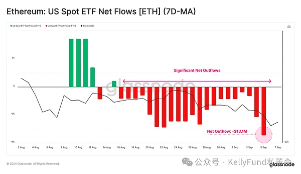 與此同時,市場中的交易繼續減少,交易量全面萎縮,表明投資者興致懨懨。機構方面,這一趨勢表現得同樣明顯,Bitcoin和EthereumETF均出現了資產的凈流出。