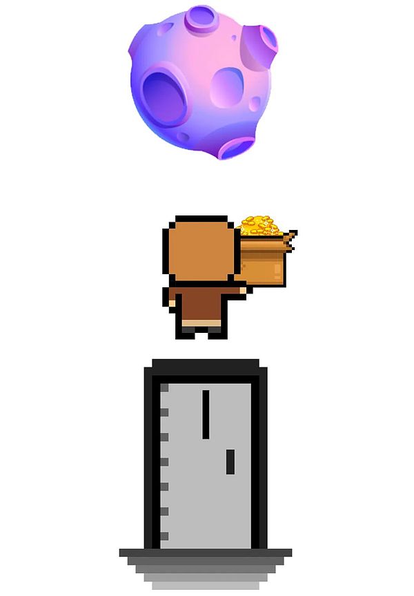 注意!此時這2個幣都會從我的A星球的門出去,其中一個幣通過窗戶落進小王子的星球,另一個幣會通過窗戶落入“B星球”。