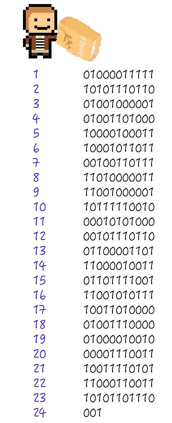 你手里捧著小飯盒,面前有兩扇門,左邊寫著0,右邊寫著1。