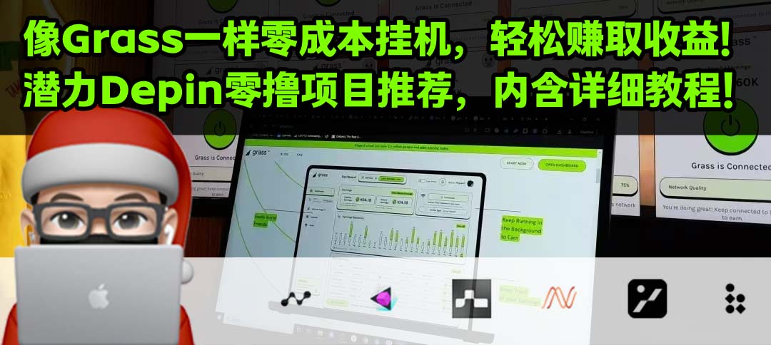 像Grass一樣零成本掛機賺錢,8個巨大潛力Depin零擼項目推薦,內含詳細教程!