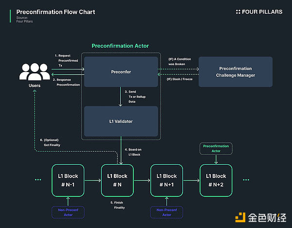 因此,預(yù)確認(rèn)的設(shè)計目標(biāo)在于彌補(bǔ)這些缺陷,特別是為那些受Rollup低效影響最大的用戶提供更便捷、更可靠的交易體驗。預(yù)確認(rèn)如何解決這些問題?