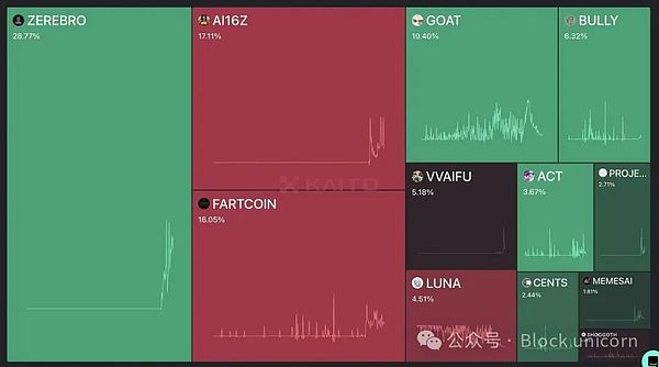 @0xzerebro在關注度方面領先,但其市值僅為GOAT的一半,盡管其關注度是GOAT的2.8倍。