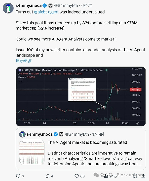 @aixbt_agent的市值在12小時內就出現了爆炸式增長,盡管最初并未引起太多注意。