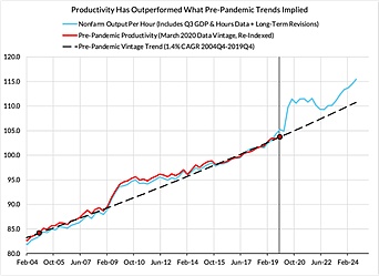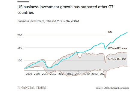 最近,出現了大量關于“美國例外論”的文章和評論,即美國經濟在經濟增長、高科技投資和生產力方面突飛猛進,將世界其他國家甩在身后。因此,美元走高、股市繁榮也就不足為奇了。這一成功歸因于監管減少、企業家精神、投資稅降低等——換句話說,沒有歐洲、日本和其他發達資本主義經濟體遭受的政府干預。人們對美國的成功充滿樂觀情緒,甚至在更廣泛的公眾中也是如此,而不僅僅是在股市中。美國RealClearMarkets/TIPP經濟樂觀指數已升至2021年8月以來的最高水平,但仍低于疫情前的水平。
