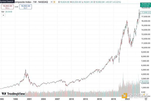 可以把現(xiàn)在的幣圈比作1999年的互聯(lián)網(wǎng)時代。在經(jīng)歷一波走向正軌的快速井噴后,Crypto行業(yè),從2025年末開始,可能會因巨大的泡沫而迎來劇烈調(diào)整。回顧歷史,互聯(lián)網(wǎng)行業(yè)在1995年12月迎來了Netscape的首次公開募股(IPO),隨后1996年4月雅虎上市引發(fā)了市場的熱潮。2000年3月10日,納斯達(dá)克指數(shù)觸及歷史巔峰的5408.6點(diǎn)。然而,隨后泡沫迅速破裂,到2001年市場進(jìn)入寒冬期。盡管廣義的寒冬期持續(xù)至2004年,但真正的低點(diǎn)是在2002年10月,納斯達(dá)克指數(shù)幾近跌破1000點(diǎn),從金融角度標(biāo)志著行業(yè)的最低谷。