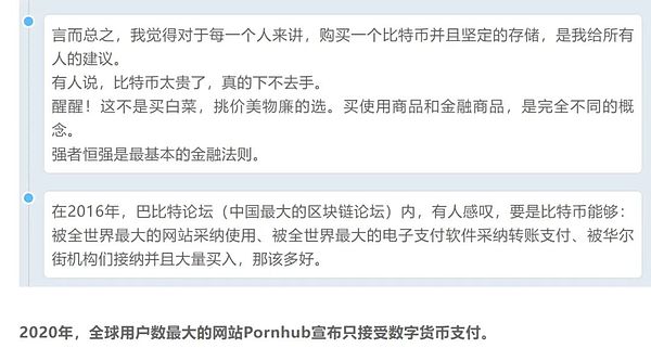 BTC的價值在宏觀領域,從金融史上類比債券、股票,是人類科技新一輪發(fā)展的“燃料”;中觀領域,是未來人類必然進入的數(shù)字世界的貨幣、也是指數(shù);微觀領域,則是新一輪法律監(jiān)管落地,發(fā)幣合規(guī)化,從而虹吸全世界民間投資需求。