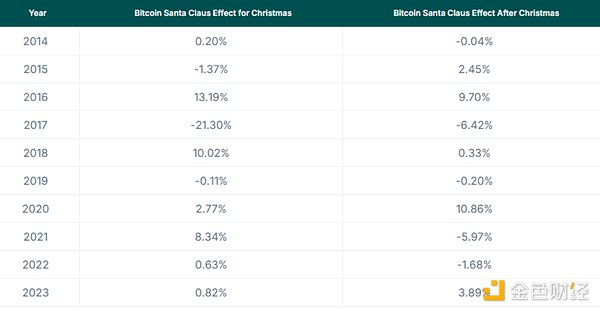然而,與加密市場的「圣誕老人行情」類似,Bitcoin的「圣誕老人行情」效應也表現出不一致的特征。3、過去10年加密市場的「圣誕老人效應」