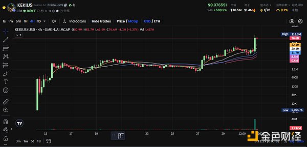 這個Tokens是在馬斯克第一次提及KekiusMaximus這個概念當天創建,并在馬斯克第二次提及時沖擊到200萬美元市值附近,之后價格一路走低,但社區賬號 @kekius_onsol 也一直保持活躍,直到今天趕上熱點,成為整個概念里最火熱的SolanaTokens。(令人感嘆,社區的運氣確實挺好。)