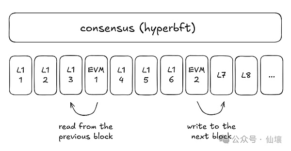 總結來看,HyperEVM類似于基于HyperliquidL1的二層,HyperEVM依賴于預編譯代碼讀取L1狀態(tài),也依賴于Events來與HyperL1產生交互。L1也存在一些系統(tǒng)合約幫助用戶在HyperEVM內觸發(fā)交易,或是進行資產跨鏈。但與一般的Layer1——Layer2架構不同,Hyperliquid為HyperEVM提供了更高的互操作性。