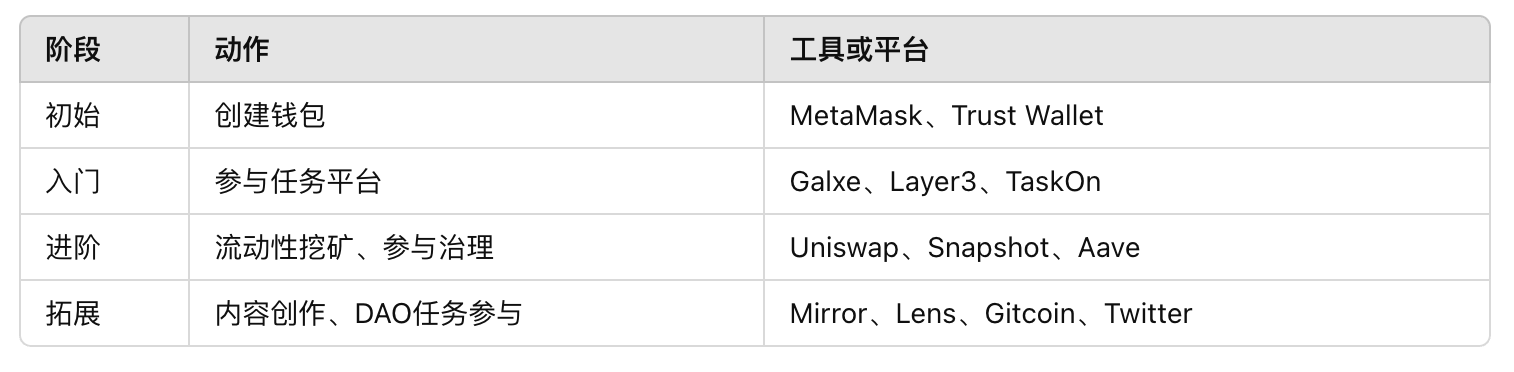 • 參與平臺如 Galxe、TaskOn、Layer3 等;
