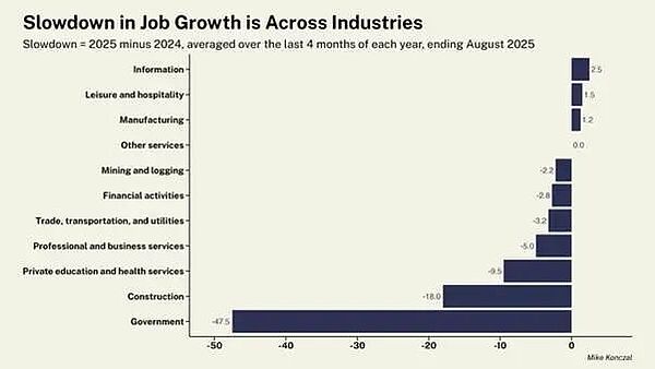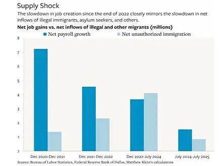 男性失業尤為嚴重。過去四個月,男性失業人數已達5.6萬。主要原因是特朗普對移民政策的打壓導致勞動力數量大幅下降。美國移民與海關執法局(ICE)正在進行大規模逮捕和驅逐,但美國外國出生工人的數量在經歷了多年的快速增長后,已開始萎縮。本土出生的工人并未從中受益——他們的失業率已達到疫情結束以來的最高水平。青年和黑人失業率均有所上升(目前為7.5%,為2021年10月以來的最高水平),這表明,對移民的打壓并沒有為美國勞動力中較為脆弱的群體創造更有利的就業市場。