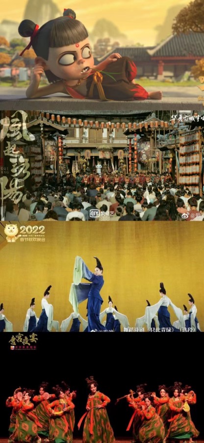 影視方面,從《大圣歸來》到《哪吒之魔童降世》的熱映,證明觀眾非常認可用最新動畫技術對古典神話進行當代解讀;愛奇藝發布“華夏古城宇宙”IP系列,相繼推出《風起洛陽》《風起隴西》新作,帶領觀眾領略了中華傳統文化風貌。電視節目上,傳統文化類舞蹈節目更是出圈,《唐宮夜宴》展現盛唐美景,《國色天香》引領國潮漢服文化,《只此青綠》展現大宋千里江山,在全民層面將漢服文化、傳統樂器與國風舞蹈等扎根傳統文化的藝術瑰寶推至新高峰。