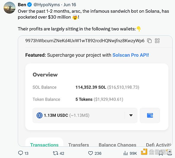 Solana的問題在于,交易的絕大多數Tokens都是波動性極高、流動性低的memecoin,交易者通常會將交易滑點設置為 >10%,以確保交易成功執行。這為 MEV 提供了一個有利可圖的攻擊面來獲取價值: