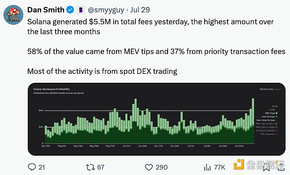 如果我們看一下區塊空間的盈利能力,很明顯現在大部分價值都來自于 MEV: